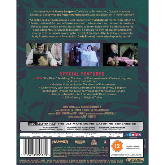 The Horror of Frankenstein 4K UHD with Slipcover (StudioCanal/Region Free)