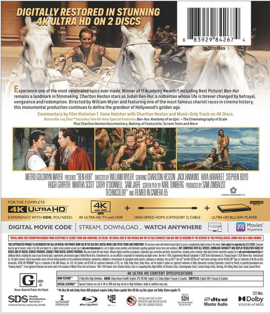 Ben Hur 4K UHD with Slipcover (Warner Bros. U.S.) LIMIT 1 PER CUSTOMER